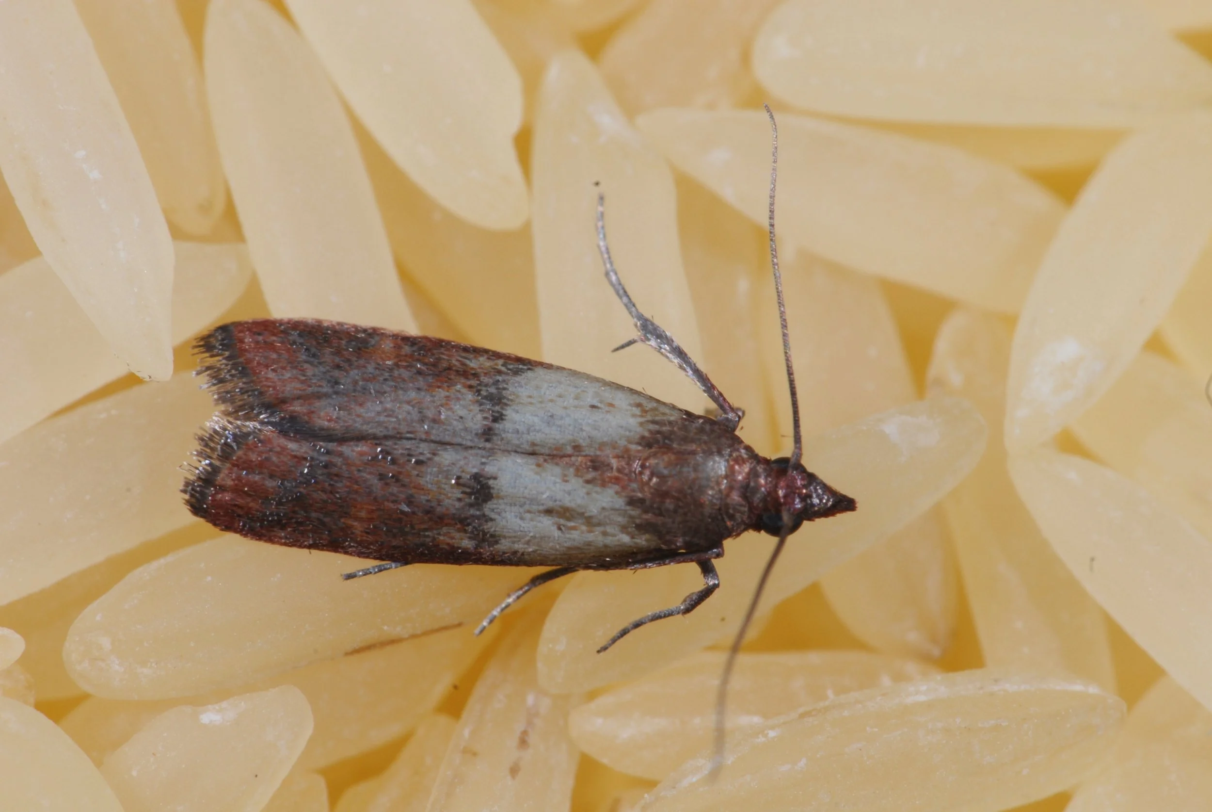 Die Dörobstmotte (Plodia interpunctella), auch als Lebensmittelmotte bekannt, zählt zu den am weitesten verbreiteten Vorratsschädlingen in Haushalten, Lebensmittelgeschäften und Lagerräumen. Die bräunlich-grauen Falter selbst sind harmlos, doch ihre Larven richten erheblichen Schaden an: Sie befallen getrocknetes Obst, Nüsse, Getreideprodukte, Schokolade und andere haltbare Lebensmittel und verunreinigen sie mit Gespinsten, Kot und Fraßspuren.